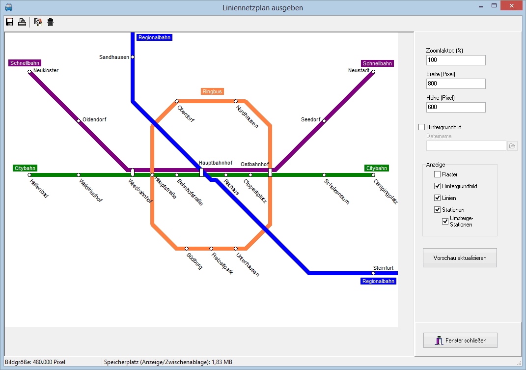 Mit LineMap Draw können einfach und schnell Liniennetzpläne erstellt werden. Die fertigen Pläne können anschließend skaliert und ausgedruckt oder gespeichert werden.