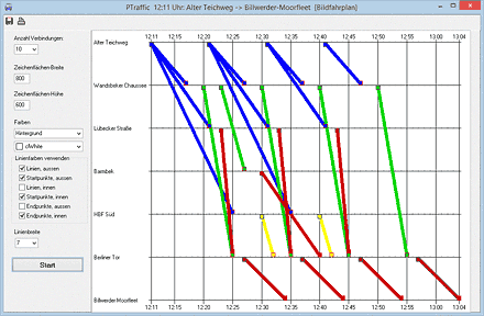 Neu in Version 1.3 ist ein sogenannter "Bildfahrplan" für gefundenen Verbindungen der Fahrplanauskunft: