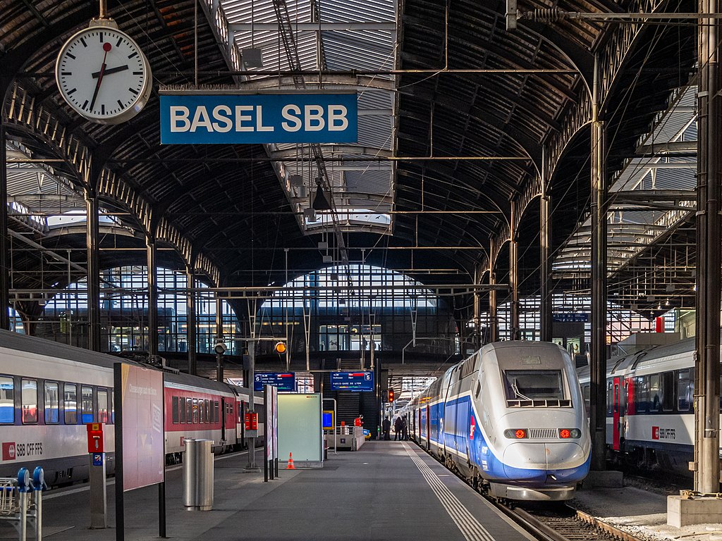 Bild: „Basel SBB Bahnsteighalle mit TGV und SBB EW IV“ (2012), Joachim Kohler, Bremen, Creative-Commons-Lizenz - Namensnennung (CC BY-SA 4.0 Deed), via Wikimedia Commons