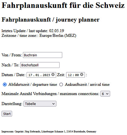 Unter www.nextstation.de ist eine Beta-Version des Autors einer Fahrplanauskunft für (z. Zt.) die Schweiz zu finden.