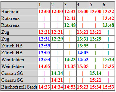 Abfahrtszeiten sortiert so dass man schnell herausfinden kann wie man von einer